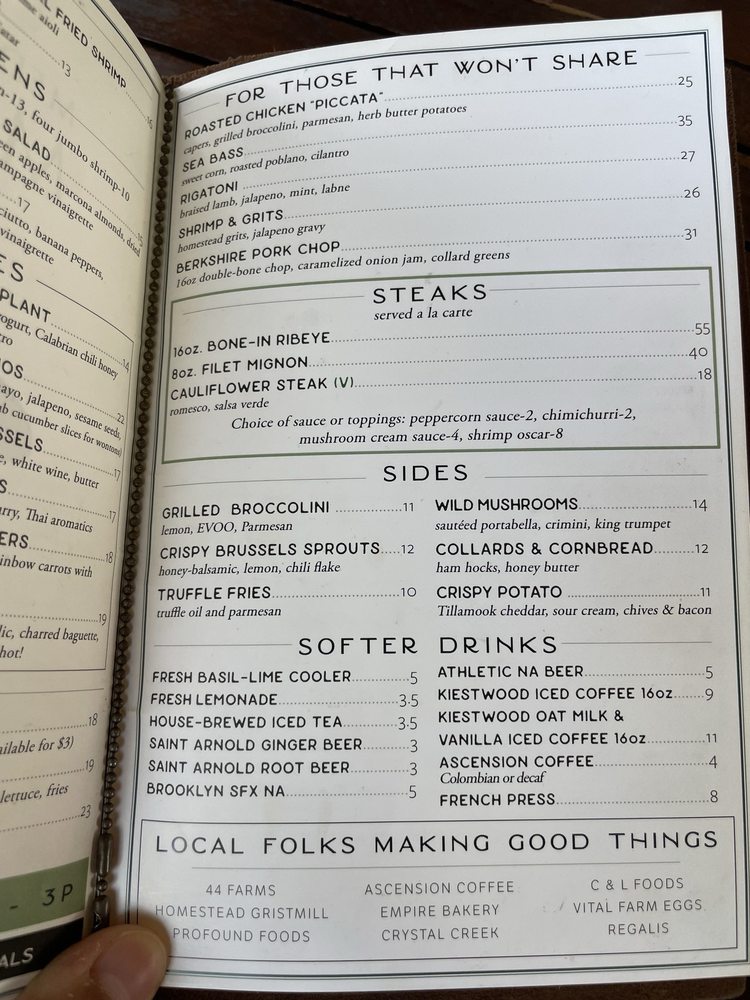 oz prime ribeye, mashed Yukon Gold potatoes, sauteed green beans & caramelized onions, mushroom cream sauce