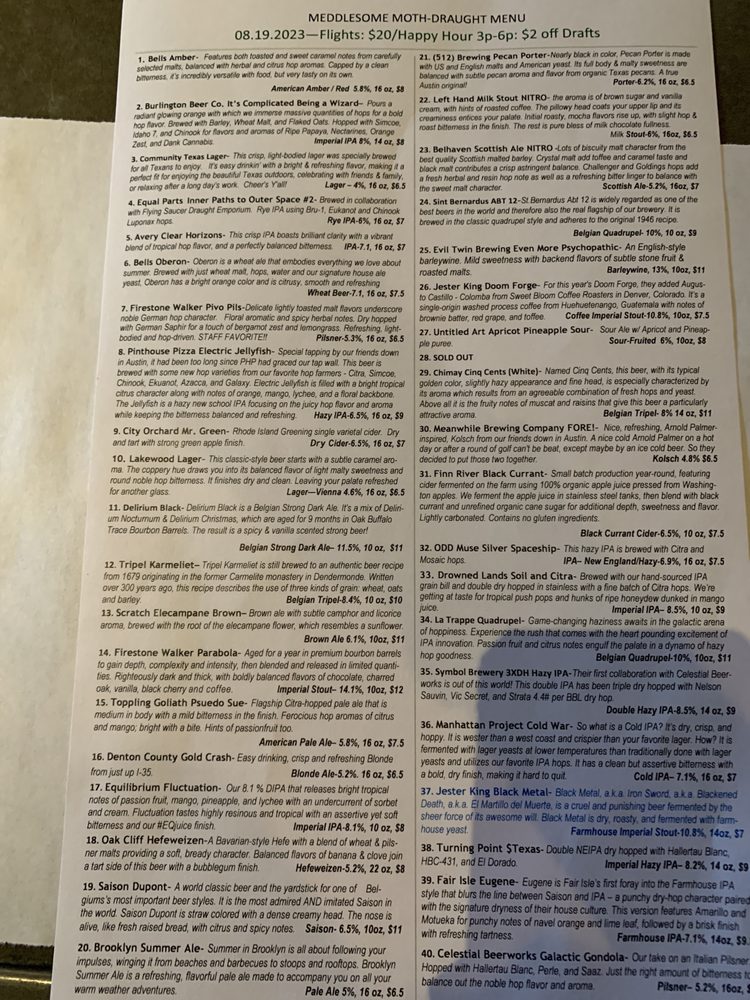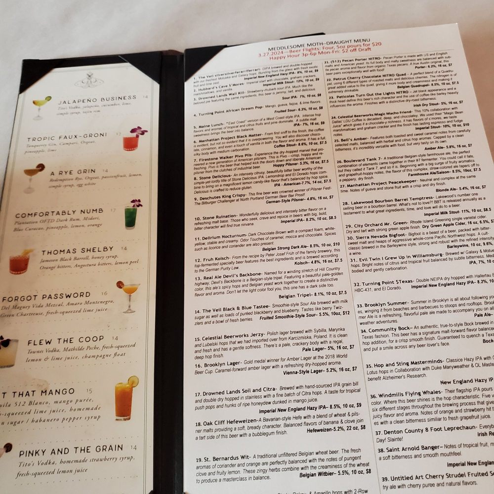 Introducing Meddlesome Moth, a trendy gastropub located in Dallas, TX, offering a diverse menu with vegan and limited vegetarian options. Known for its cool vibe, friendly staff, and extensive beer selection, this unique establishment caters to a variety of tastes. Customers rave about dishes like duck wings, risotto tots, bone marrow, and ocean risotto, all prepared to perfection. The innovative Caesar salad with fried capers and the decadent desserts like bread pudding and chocolate mousse are must-try items. With its artsy interior, excellent service, and bountiful portions, Meddlesome Moth provides a memorable dining experience. Whether enjoying Happy Hour specials or a leisurely brunch, this establishment is sure to impress with its creativity and attention to detail. Don't miss out on this culinary gem in the heart of Dallas.